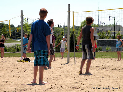 As other little ones played in the playground adjacent to this volleyball area, everyone was thrilled with the outcome. I could see our two here, both immensely enjoying their games, and both walking away not only pooped from their games, but also with a swim at the beach before leaving the area, complete with big smiles on their faces.